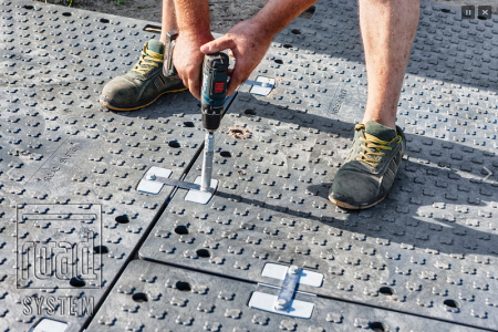 Panely ROAD SYSTEM sú ľahké, ale pritom extrémne odolné a pevné, veľmi ľahko sa prispôsobia rôznym povrchom. Nie je preto potrebné nákladné vyrovnávanie a spevňovanie podkladu. Panely sa jednoducho prispôsobia danej ploche. Stačí urovnať existujúci terén zhruba do roviny. Pokládka plastových cestných panelov ROAD SYSTEM nevyžaduje žiadne ďalšie špeciálne vybavenie, je jednoduchá a rýchla. S panelmi sa ľahko manipuluje - jeden panel ľahko unesú dvaja pracovníci.